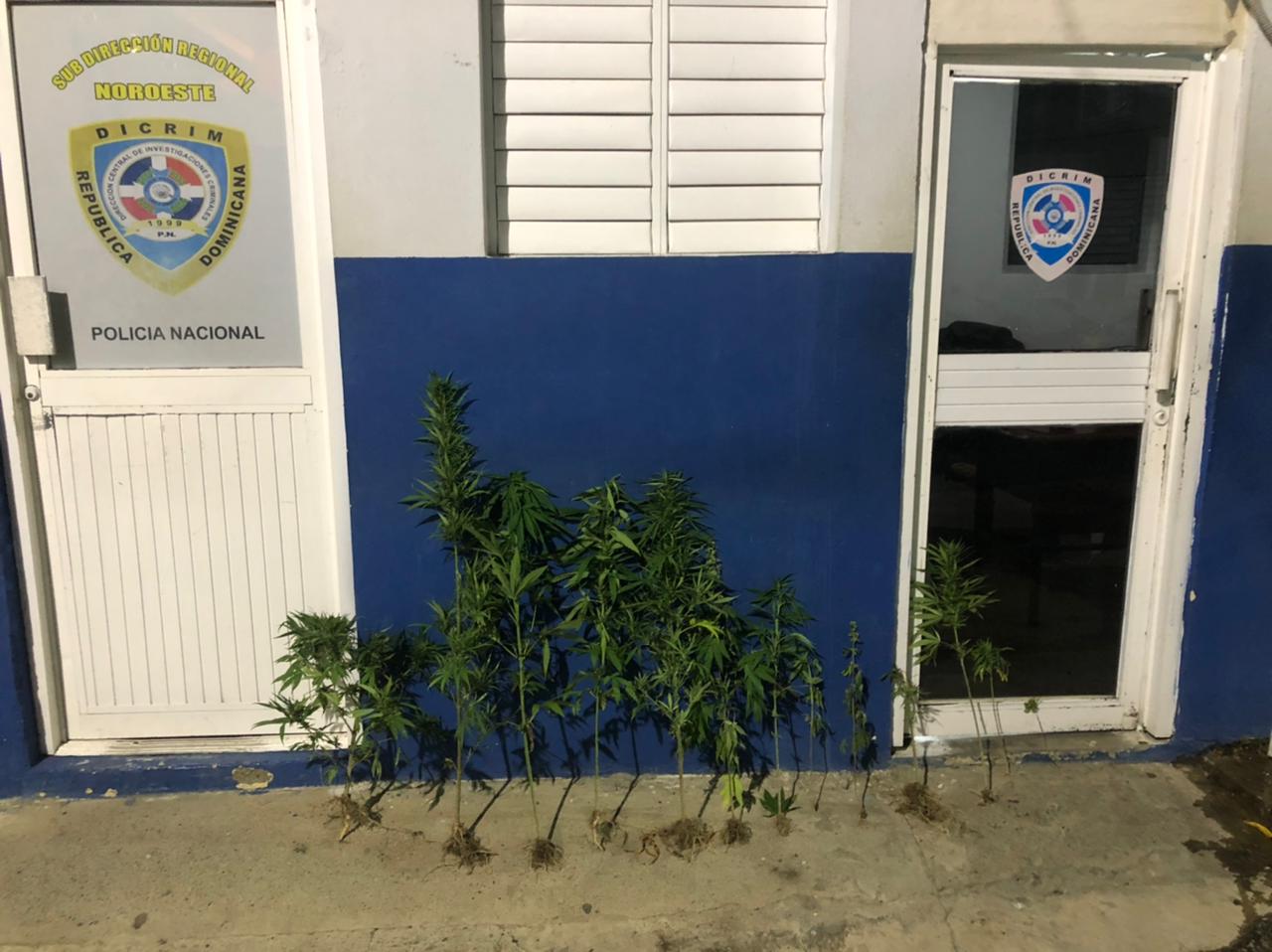 VALVERDE.-Miembros de la Policía Nacional ocuparon 13 plantas de presunta marihuana y seis porciones de cocaína durante una intervención en un punto de expendio de drogas en el sector Juan Bosch, municipio Laguna Salada.